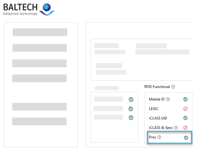 In the section RFID Functional, see if Prox is marked with a green checkmark.